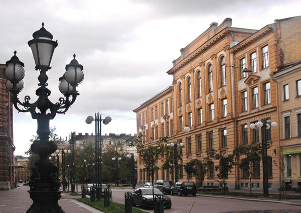Ну, конечно же, это школа из моего любимого фильма "Ключ без права передачи". Старинное здание, бывшая гимназия. Здесь учились Дмитрий Мережковский, Маршак, Зощенко... Боже мой, и в такой школе работать?! Классы со старыми партами, с кафедрами, с окошечком в верхней части двери для надзирателей. Я сидела за партой оглушенная, не понимающая,в каком я времени. Куратор опаздывал.Он вбежал, оправдываясь на ходу. Бросил на стол свой потрёпанный портфель,сунул под стол авоську с пакетами- ну,что он может рассказать мне необычного о моём любимом с девятого класса Блоке? Остановившись у окна, вглядываясь во что-то, он произнёс: